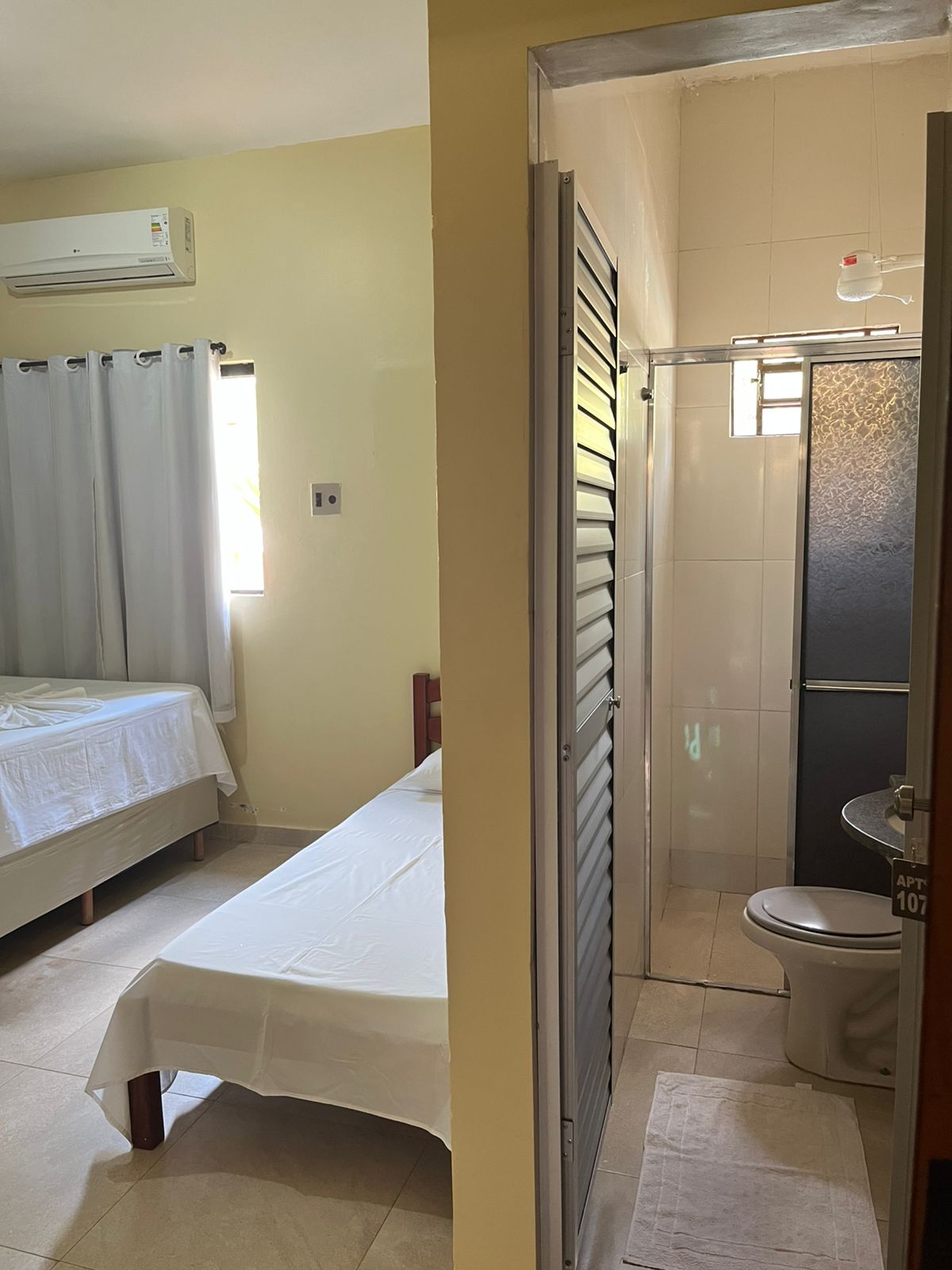 Dormem 5 pessoas. 1x Cama de casal | 2x Cama de solteiro | 01X SOLTEIRO